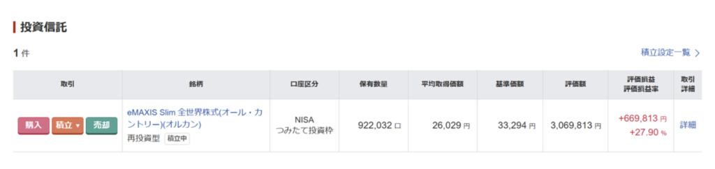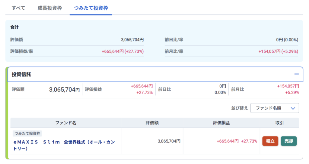 新NISAでは、つみたて投資枠のみを利用し、オールカントリーに投資を続けています。