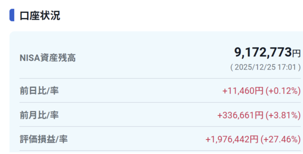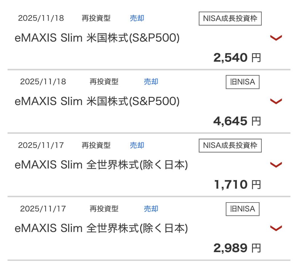 その後、新NISAでも毎月5万円ずつ積み立てを続け、2025年11月に積立をストップしました。