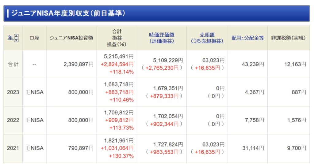 ややこしいのですが、私名義のNISAは、途中で証券会社を変更しています。