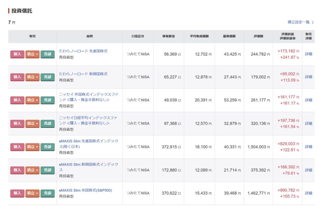 アメリカ株や先進国株に投資する銘柄を中心に保有しています。