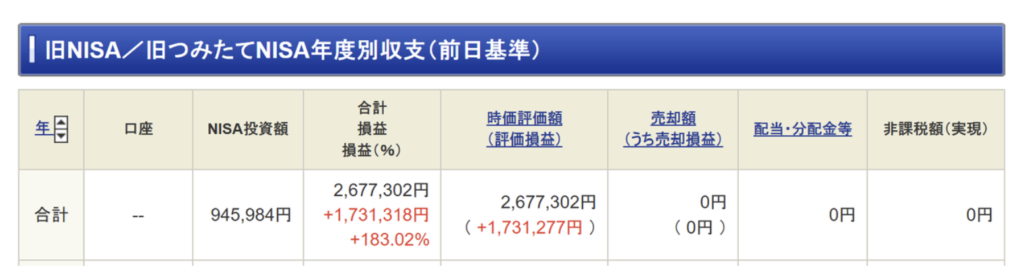 2024年から制度が新NISAに切り替わったあとも、そのままNISAを続けています。