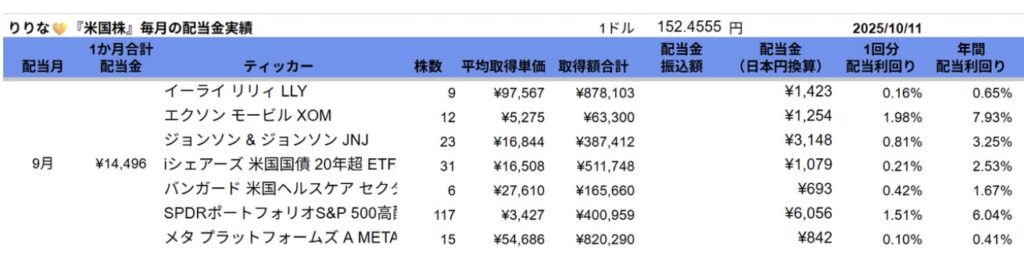 9月は米株からの配当が1万円超えたので、いつもよりもらえたな~って印象があります。