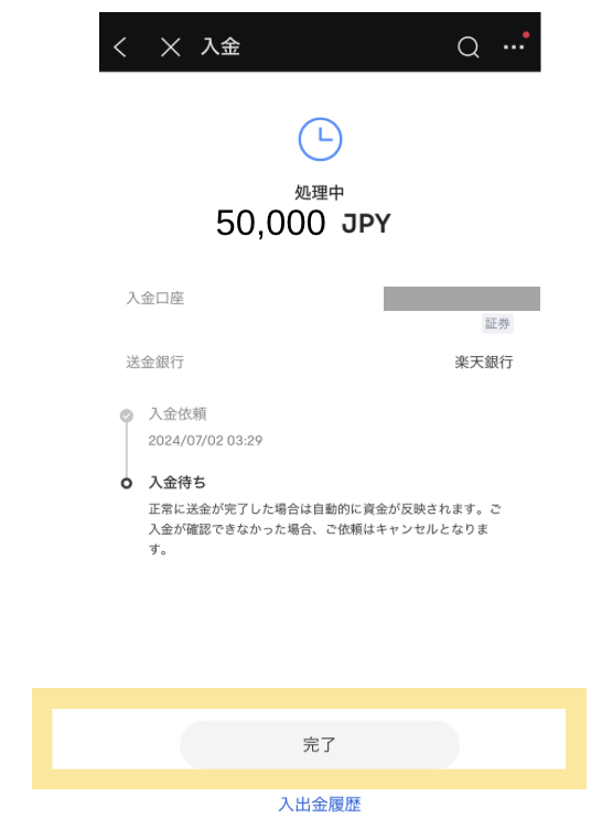 口座残高に反映されていればOK。