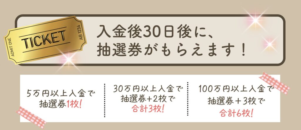 入金後30日経過すると、抽選券が付与されます!