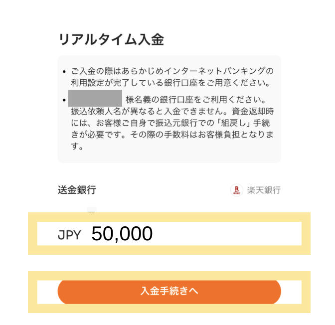 ②初期設定&5万円以上の入金