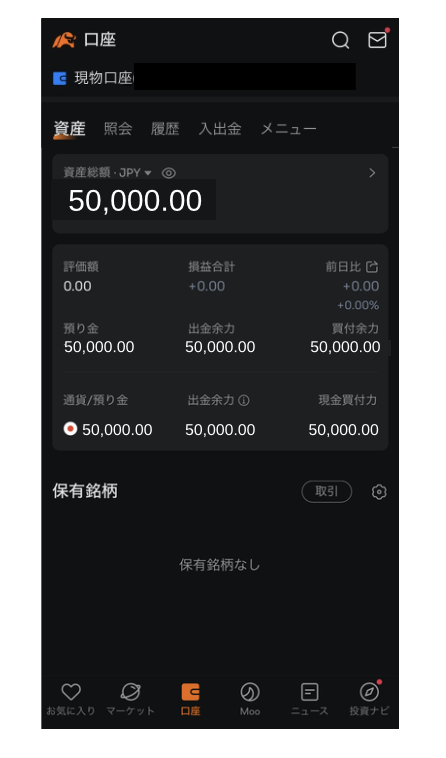moomoo証券に自動で戻ると この画面になるよ〜!