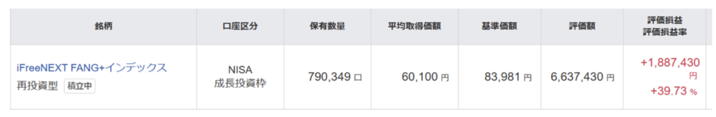 夫名義の口座では、iFreeNEXT FANG+インデックスを積み立てています!