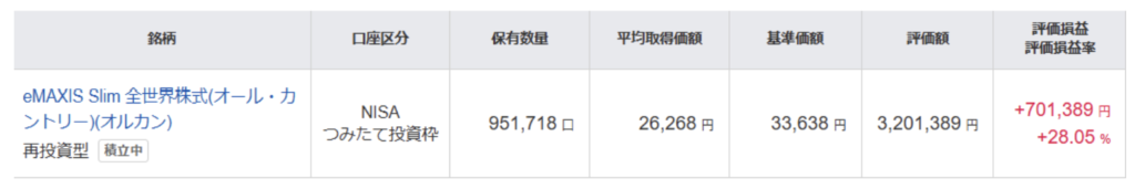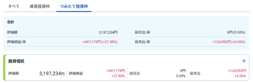 続いて、私名義のつみたて投資枠の損益状況です。