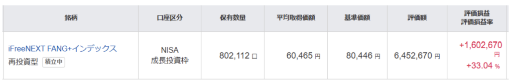 夫名義の口座では、iFreeNEXT FANG+インデックスを積み立てています!