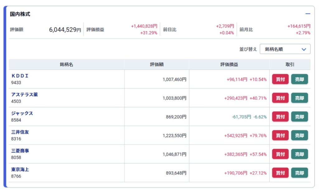 • 投資している銘柄