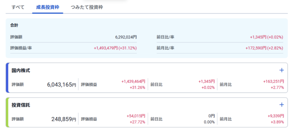 続いて、私名義の成長投資枠の運用状況です。